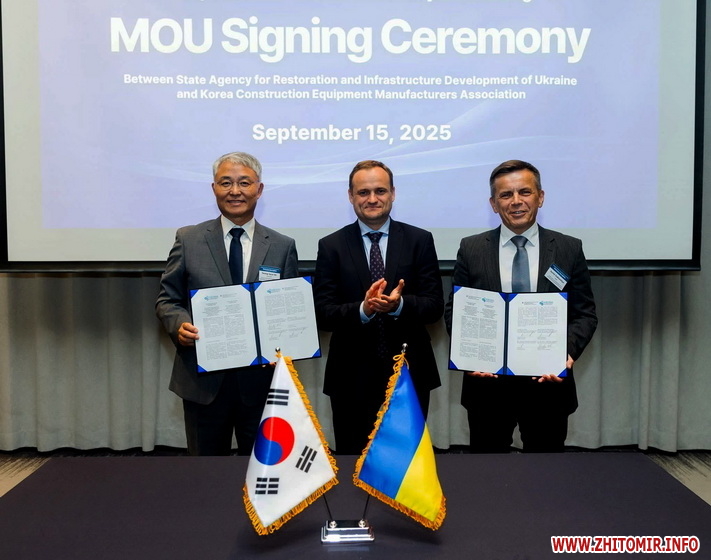 Під час робочого візиту делегації Міністра розвитку громад та територій до Республіки Корея був підписаний меморандум з KOCEMA (Асоціацією виробників будівельної техніки Республіки Корея), який передбачає створення на базі одного із закладів профтехосвіти Житомира навчального центру для операторів важкої будівельної техніки.