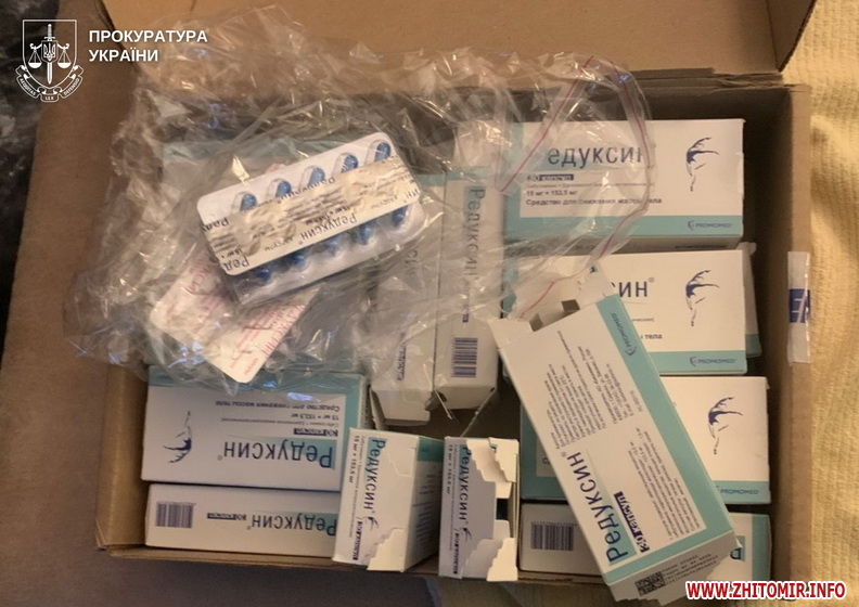 У Житомирській обласній прокуратурі повідомили, що жителька Києва організувала постачання з-за кордону та подальший збут психотропної речовини «сибутрамін» у складі капсул для схуднення, який виробляється в російській федерації. Препарати вона реалізовувала через мережу Інтернет на території України та за кордон. Зокрема, органом досудового розслідування задокументовані факти переправлення контрабандою капсул препарату з психотропною речовиною до м. Кишинів Республіки Молдова, а також збуту психотропної речовини на території України шляхом поштових відправлень.
