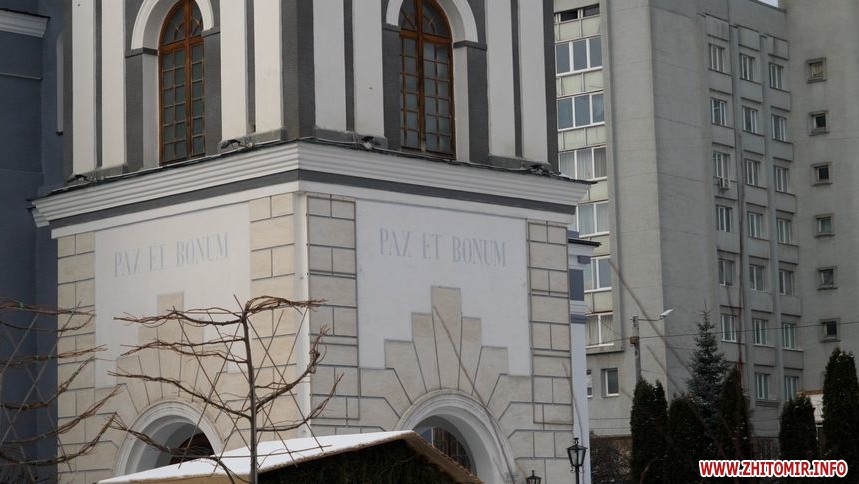 Фасад храму та дзвіницю пофарбували, проте його колір залишився незмінним. Також замінили напис на вежі костелу. Раніше це була латинська фраза «Pax et Bonum», станом на 26 вересня житомиряни бачать її український переклад – «Мир та добро».