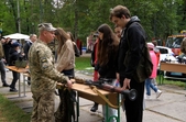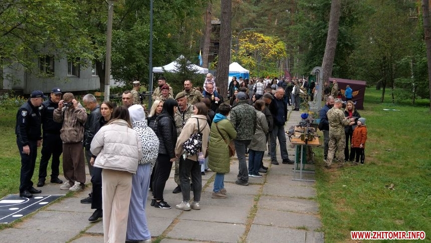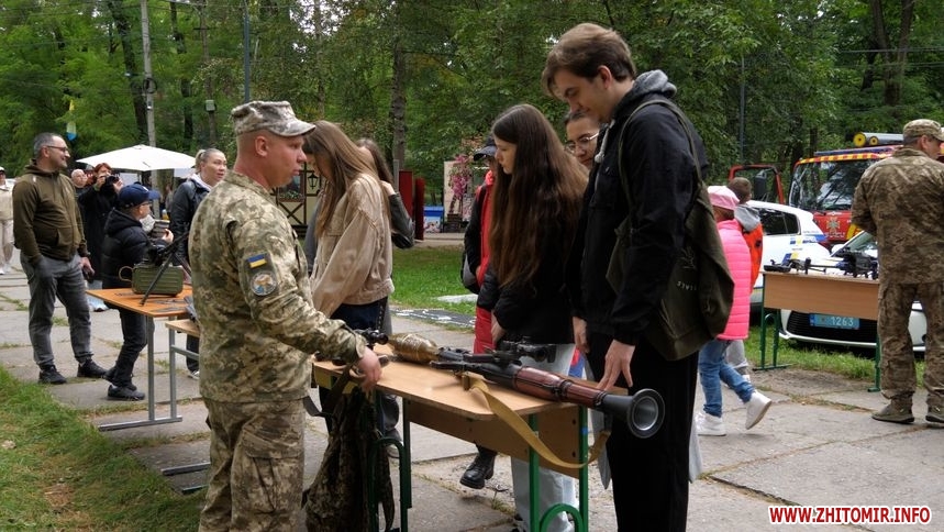 «У нас є спортивна локація, де можна побачити виступ нашого військового інституту з гирями, вони покажуть і навчать це робити. Також ми підготували локацію з медицини, тактичної медицини для військових, психологи працюють разом з дітьми та з сім’ями. Можемо тут побачити пожежну машину наших фахівців ДСНС. До нас доєдналася поліція, ГО «ЯМаріуполь» зі своєю виставкою. Доєднався військовий інститут з розбиранням і збиранням військової зброї. Можна політати на FPV, симуляторах, Mavic, поїздити на наземному дроні. До 16 години ми гуляємо гідропарком, а потім запрошуємо всіх на пляж, де буде виступ козаків і польова кухня з кулешем, борщем і пловом», – розповідає начальник управління у справах ветеранів війни Житомирської міської ради Андрій Забігайло.