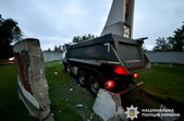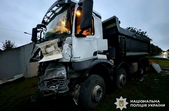 «Слідчий попередньо встановив, що водій автомобіля «Mercedes-BenzArocs», 44-річний житель Житомирської області, рухаючись на кільцевому перехресті, проявив неуважність, не впорався з керуванням та здійснив наїзд на бетонну стелу. Унаслідок ДТП керманича із закритою черепно-мозковою травмою, струсом головного мозку, переломом ноги та забоями медики госпіталізували до лікарні», - йдеться в повідомленні.