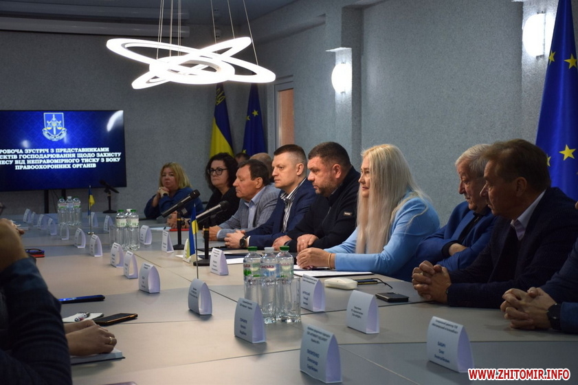 Керівник Житомирської обласної прокуратури Олександр Білошицький разом із заступниками провів зустріч із представниками суб’єктів господарювання та бізнес-асоціацій щодо захисту підприємців від неправомірного тиску з боку правоохоронних органів.