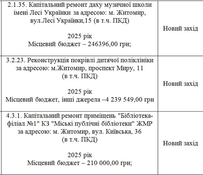 Також на 2025 рік додаються об’єкти: