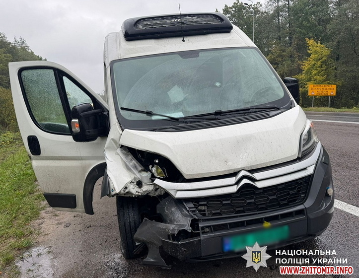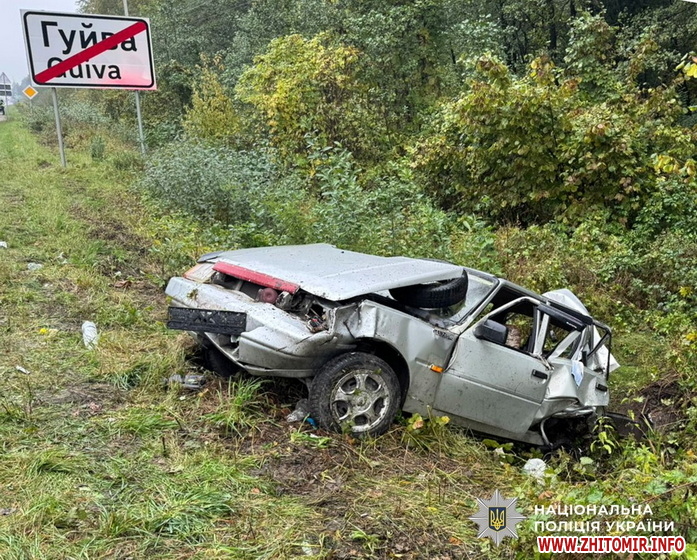 У ДТП неподалік Житомира травмувалися четверо людей: поліцейські встановлюють обставини. Подія сталася 9 жовтня близько 09:15 на 185 км автодороги Виступовичі — Житомир — Могилів-Подільський, у с. Гуйва. На автошляху зіткнулися мікроавтобус Citroen під керуванням 22-річного жителя Київщини та ЗАЗ, за кермом якого перебував 65-річний житомирянин.