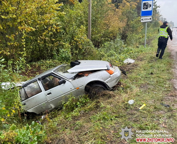 «На місці події працювала слідчо-оперативна група Житомирського райуправління поліції №1 та фахівці ДСНС. Унаслідок ДТП отримали травми водій та троє пасажирок ЗАЗ, віком 56, 58 та 83 роки. Їх було доставлено до лікарні. Усі обставини події встановлюються», - йдеться в повідомленні.