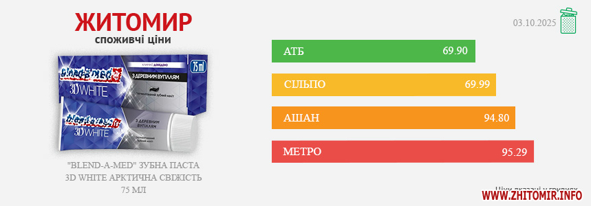 Моніторинг здійснено на основі інформації, отриманої за методом контрольної закупки 03.10.2025 р. у місцях продажу: АТБ, пр. Миру, 15, Ашан, вул. Київська, 77, Метро, вул. Ватутіна, 55-в, Сільпо, вул. Житній ринок, 1