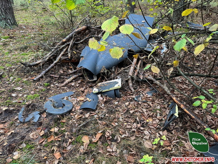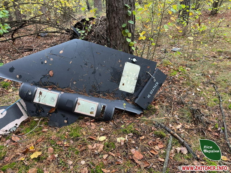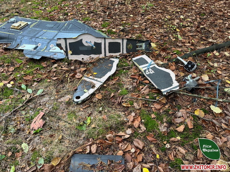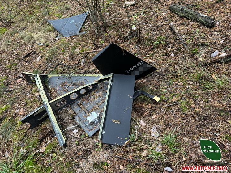 Лісова охорона знайшла у Коростенському надлісництві уламки російського шахеда після дронової атаки, що сталася вночі.