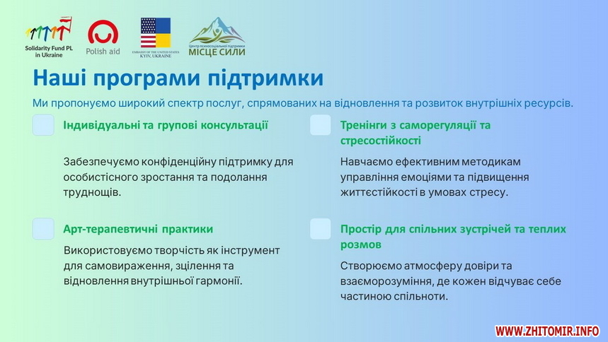 Як повідомляв Житомир.info, в лютому 2025 року у Житомирі відкрили Центр психосоціальної підтримки Товариства Червоного Хреста України, де працюватимуть волонтери напряму психічного здоров'я та досвідчені психологи.