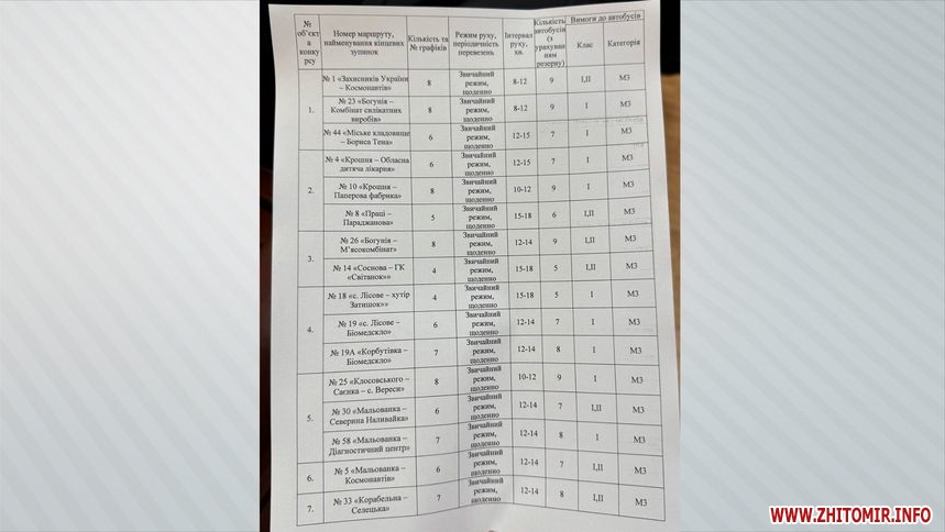 Нагадаємо, 6 серпня цього року виконавчий комітет Житомирської міської ради затвердив новий склад конкурсного комітету з визначення перевізників на автобусні маршрути та оновив автобусну мережу. 15 вересня на сайті міської ради оприлюднили оголошення про конкурс на обслуговування автобусних маршрутів у Житомирі.