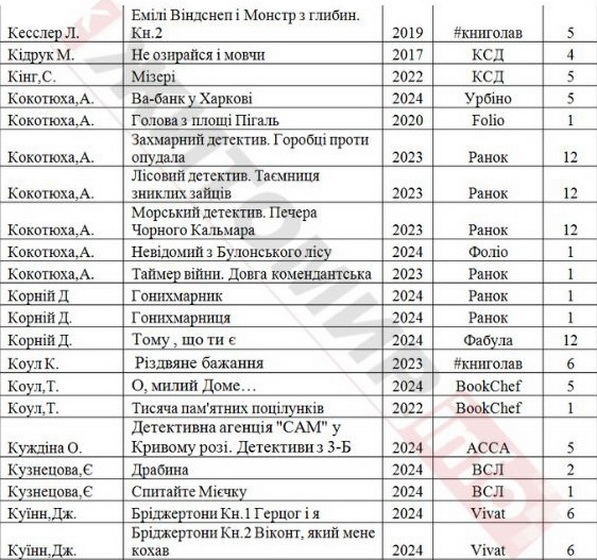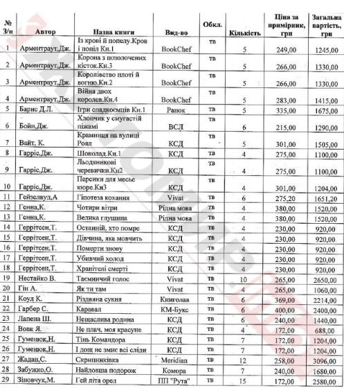 Після цього в листопаді 2023 року був договір з ФОП Соколовська Людмила Броніславівна на купівлю 379 книг (69 найменувань) за 99 тис. грн.