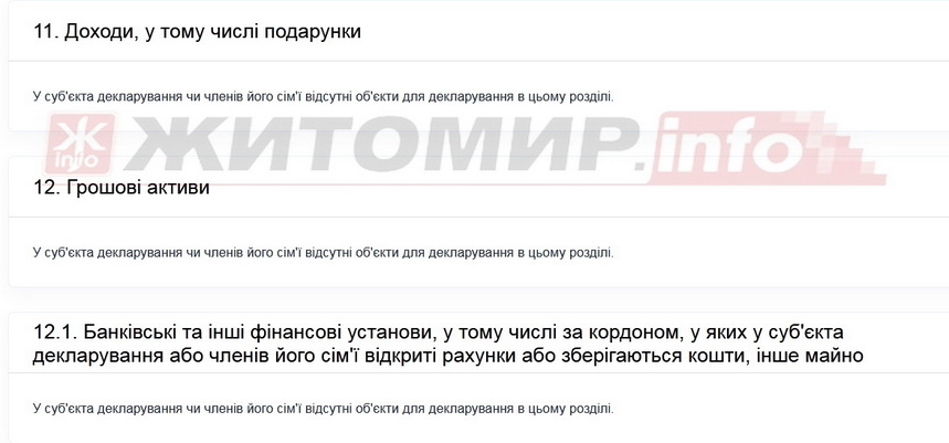 Зауважимо, що начальник комунального підприємства «Озерне» Новогуйвинської селищної ради, який був призначений на цю посаду в грудні 2021 року, в жодній з поданих річних декларацій не вказував свої доходи, лише декларував майно: за 2022 рік, 2023 рік, 2024 рік.