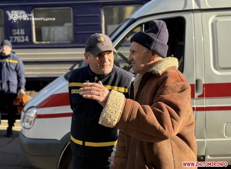Як повідомляв Житомир.info, 17 жовтня 2025 року до Бердичева прибув евакуаційний потяг, яким із прифронтових територій евакуювали 30 людей похилого віку з інвалідністю — підопічних геріатричного пансіонату. Половину евакуйованих пенсіонерів поселили у Бердичівському геріатричному пансіонаті, інші 15 людей оселилися у Коростенському.