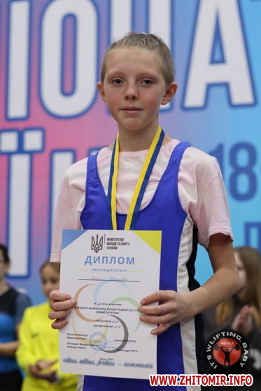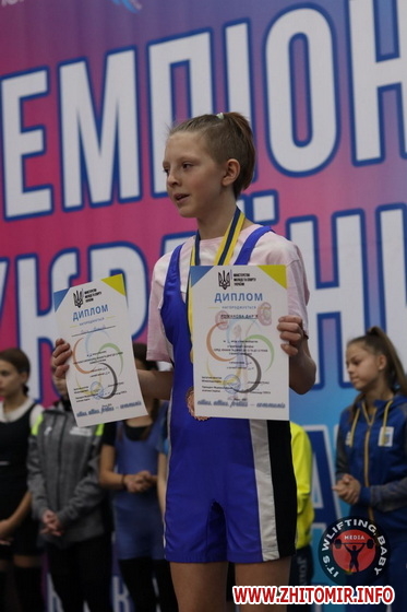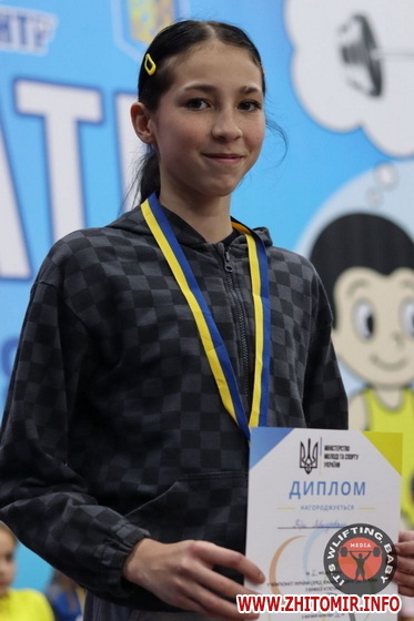 Віталіна Телішевська (U15), Бердичів — абсолютна чемпіонка та виконавець нормативу Майстра спорту України. Чинна рекордсменка України у ривку, поштовху та сумі двоборства;