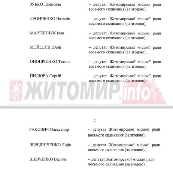 До складу робочої групи увійшли дев’ять депутатів Житомирської міської ради: