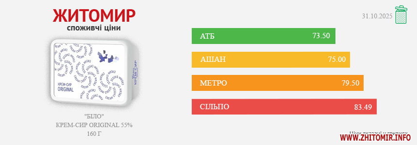 Моніторинг здійснено на основі інформації, отриманої за методом контрольної закупки 31.10.2025 р. у місцях продажу: АТБ, пр. Миру, 37, Ашан, вул. Київська, 77, Метро, вул. Ватутіна, 55-в, Сільпо, вул. Житній ринок, 1