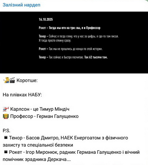 Згодом НАБУ оприлюднило подробиці операції з викриття корупції у сфері енергетики та частину перехоплених розмов.
