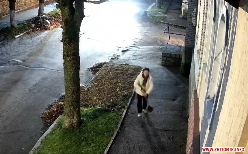 На вулиці Шляхетній (ред. колишня Лермонтовська) у Житомирі літня жінка вкрала з клумби кущ гібіскусу. Це зафіксувала відеокамера.