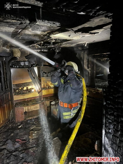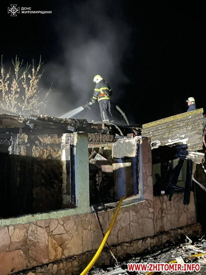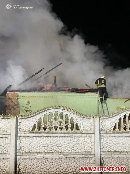 «Подія сталася вночі в с. Кодня Житомирського району. Через пізній виклик вогонь встиг охопити шиферну покрівлю майже по всій площі та загрожував поширенням всередину оселі. Площа пожежі складала 112 кв. м.За півтори години пожежу ліквідовано. Вогнем знищено покрівлю та частково перекриття на зазначеній площі. Також пошкоджено домашні речі в приміщеннях коридору та кухні. Подальшого поширення не допущено. Усі обставини події встановлюють фахівці. На місці працює офіцер-рятувальник громади», - йдеться в повідомленні.