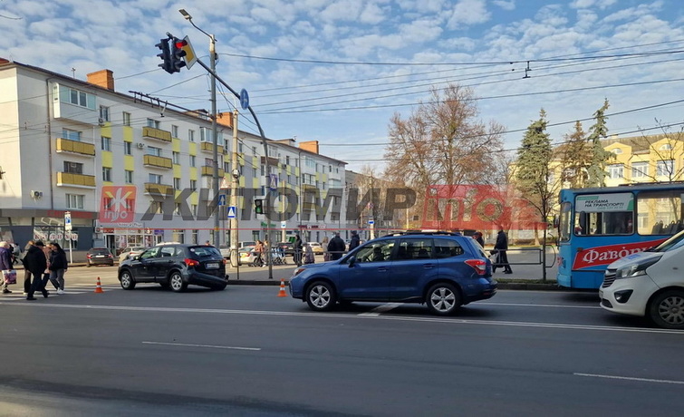 Вранці на перехресті вулиць Київська і Хлібна у Житомирі зіткнулись тролейбус і автомобіль.