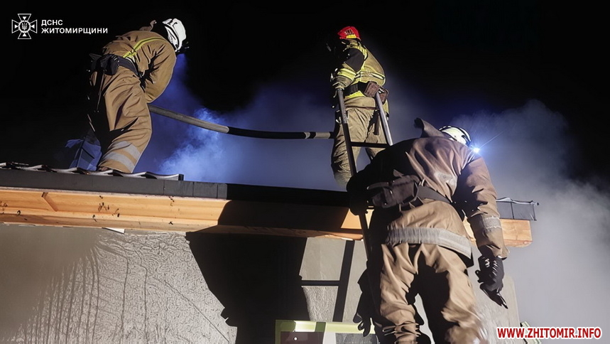 «21 листопада о 04:57 до Служби порятунку «101» надійшло повідомлення про пожежу в дерев’яному житловому будинку в с. Стовпинка Коростенського району. На місці подій фахівці ДСНС встановили, що через пізнє виявлення вогонь встиг охопити дах дерев’яної оселі по всій площі та поширився в одну з кімнат. Площа пожежі становила близько 90 кв. м», - йдеться у повідомленні.