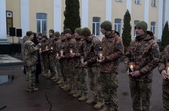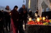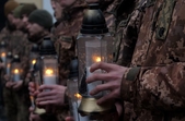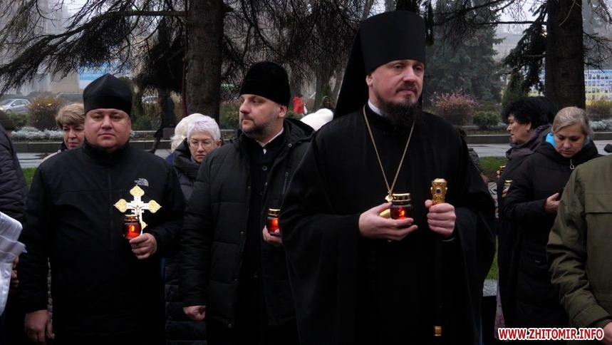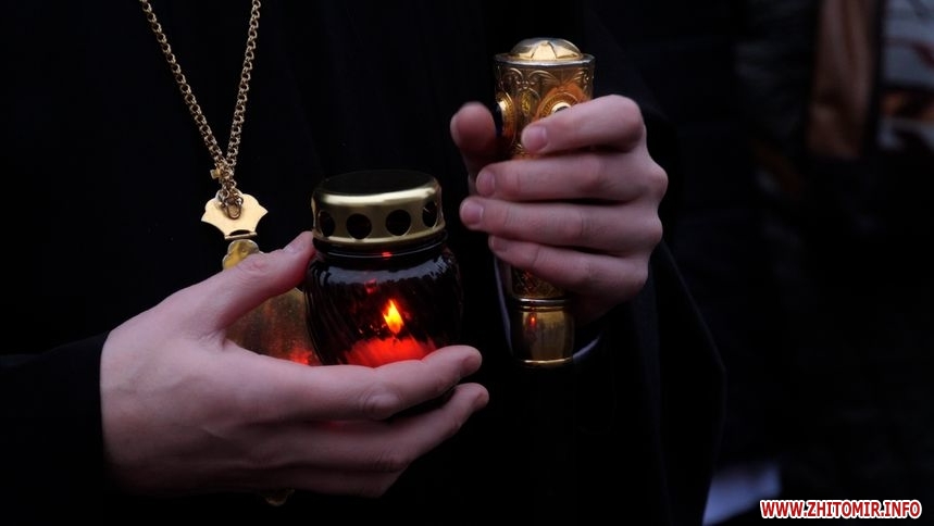 Житомиряни вшанували загиблих хвилиною мовчання та разом помолилися за тих, хто віддав життя за Україну.
