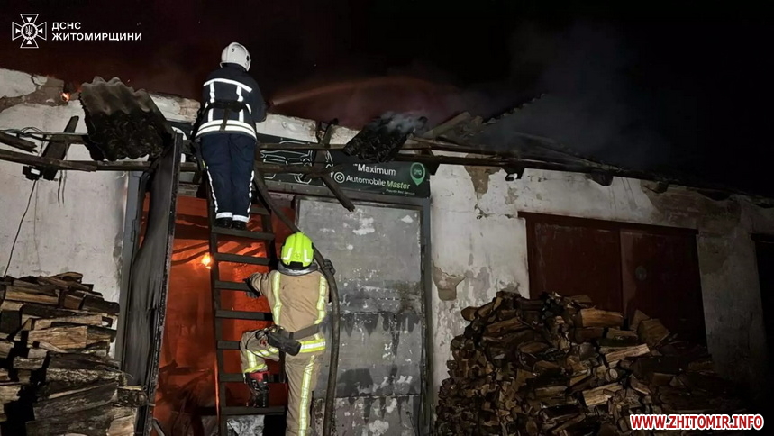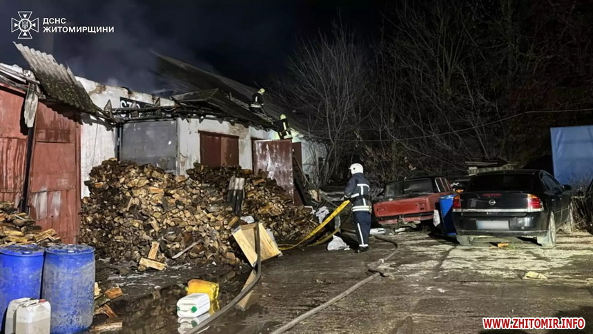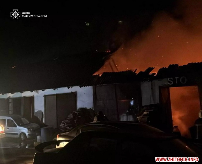 «Сьогодні вночі до рятувальників надійшло повідомлення про пожежу в гаражі у м. Андрушівка Бердичівського району. На момент прибуття вогнеборців горіла покрівля над однією секцією гаража на площі близько 100 кв. м, існувала загроза поширення полум’я на інші секції. Під′їзд до місця пожежі ускладнювався великою кількістю приватних автівок. Пожежу ліквідовано за дві години. До гасіння було залучено 20 рятувальників та 4 одиниці техніки. Внаслідок надзвичайної події вогонь знищив покрівлю гаража на зазначеній площі та три легкових автомобілі. Ще три секції та два автомобілі фахівцям ДСНС вдалося врятувати», - йдеться в повідомленні.