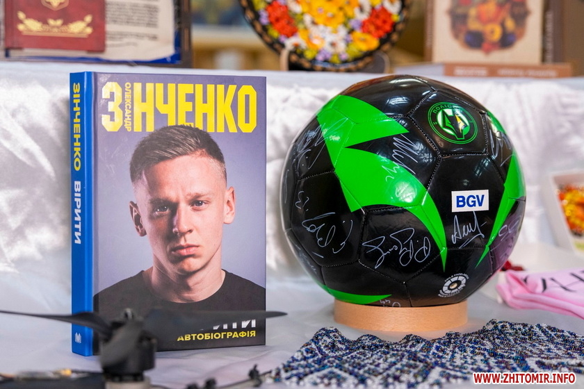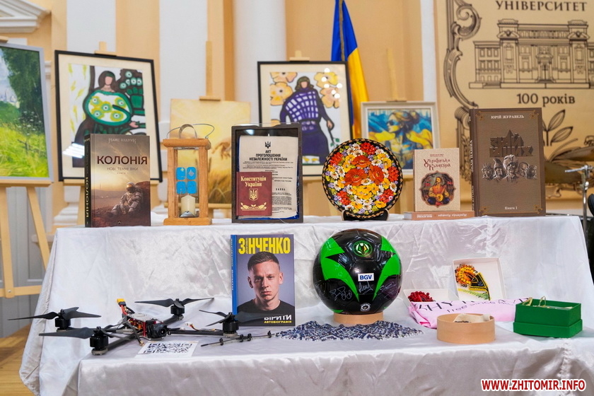 На аукціоні представили 18 лотів: вироби ручної роботи (силянки, брошки та інші прикраси ручної роботи), картини, книги з підписами авторів, а також футбольний м’яч ФК «Полісся», підписаний гравцями клубу. Також провели лотерею: кожен учасник міг придбати квиток за 200 гривень і виграти один із подарунків у кінці вечора.