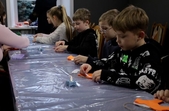 Тут малеча грає у святкові ігри, також на майстер-класі діти власноруч роблять новорічні сувеніри.