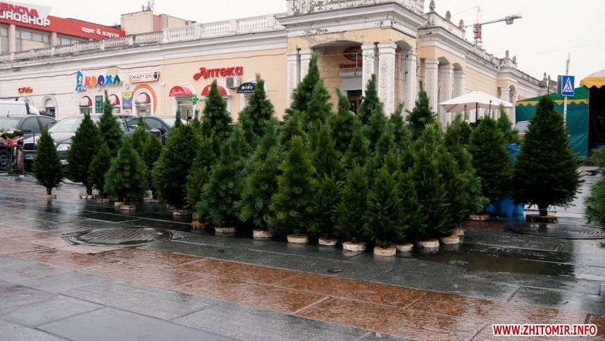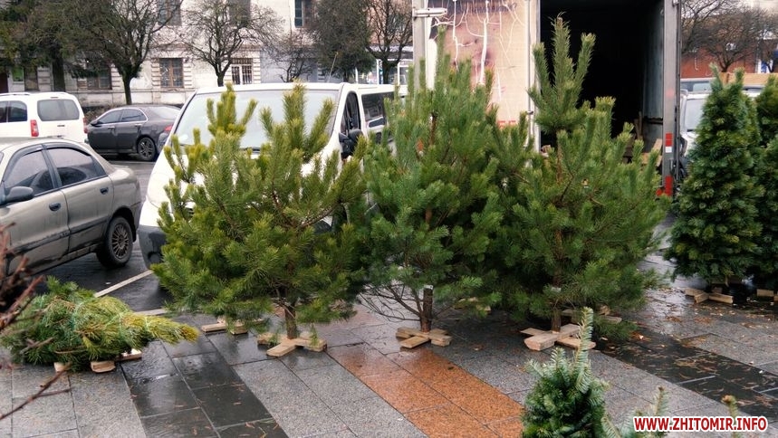 У Житомирі 4 грудня вже працюють ялинкові базари. На вул. Небесної сотні поки що вибір не великий. У продавця Сергія можна придбати сосни зі Звягельського лісництва, за його словами ціна цьогоріч збільшилася.