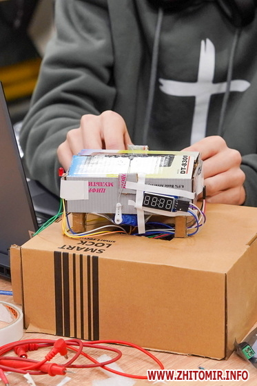 - Команда “TD Company” (GhostLid) створили безконтактний сміттєвий бак на ультразвукових датчиках для підвищення гігієни у громадських місцях. Варто зазначити, що ця команда складалася з учениць школи TGI Academy (м. Ірпінь), що підтверджує міжрегіональний інтерес до подій Житомирської політехніки.