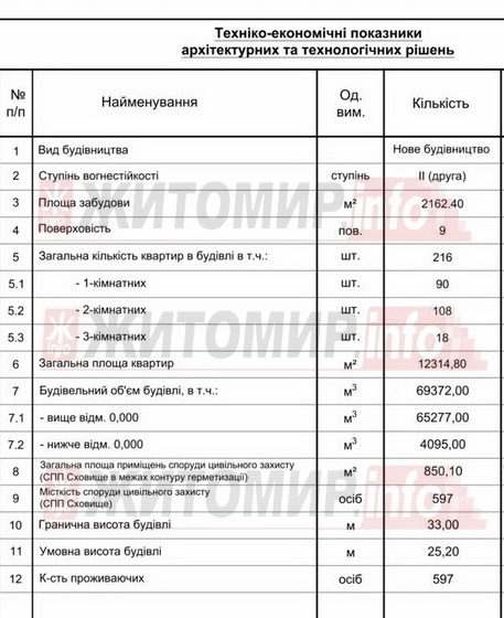 Загальна площа будівель – понад 16 тис. кв.м, з яких 850 кв.м – укриття. Всього у будинках буде 216 квартир.