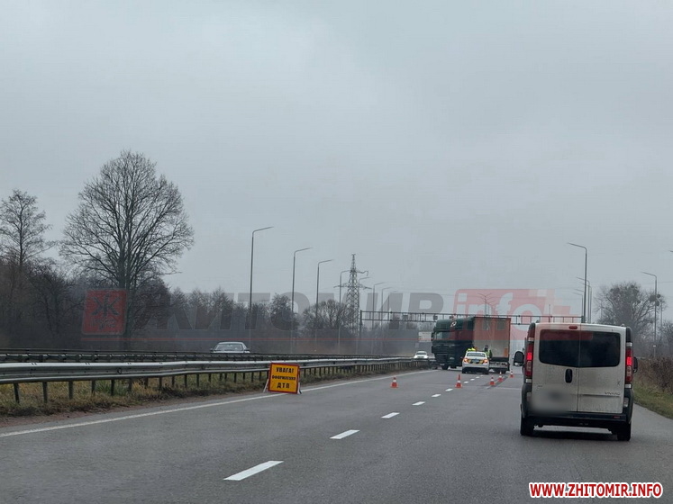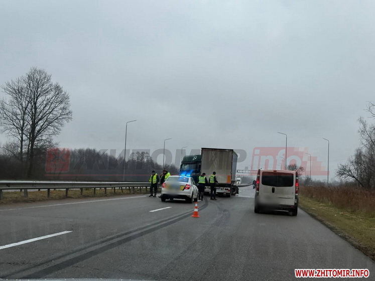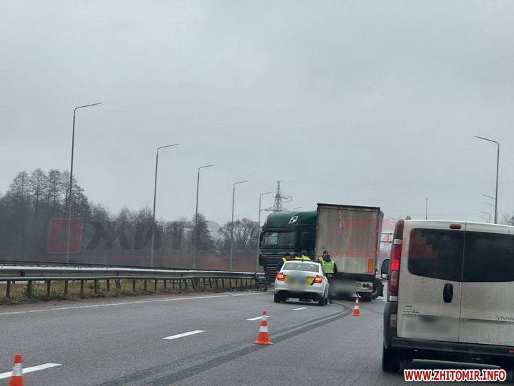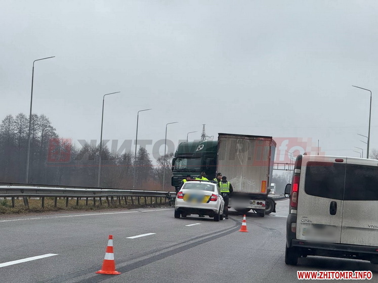 На трасі Київ-Чоп поблизу селища Пулини Житомирського району сталася ДТП за участю вантажівки.