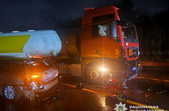 «Попередньо, відбулося зіткнення попутних автомобілів MAN, під керуванням 32-річного жителя Кіровоградщини, та Volkswagen, за кермом якого перебував 35-річний житель Хмельницької області. Після цього вантажівка виїхала на смугу зустрічного руху та зіткнулася з мікроавтобусом Opel, котрим керував 51-річний киянин. На жаль, у результаті ДТП загинула 19-річна жителька столиці, пасажирка мікроавтобуса», - йдеться в повідомленні.