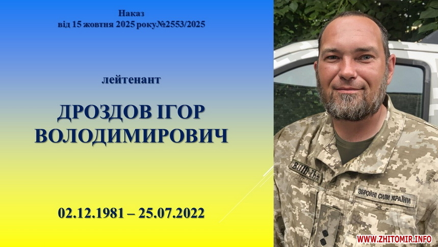Як повідомляв Житомир.info, 24 жовтня 2025 року у Житомирі рідним полеглих Героїв вручили державні нагороди, зокрема три прижиттєві, які військовослужбовці не встигли отримати.