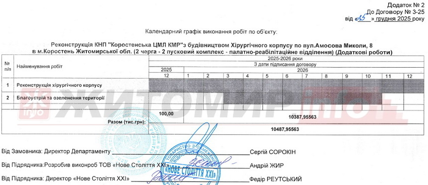 Договір на виконання додаткових робіт підписали 25 грудня, строк його дії – до 31 грудня 2026 року.