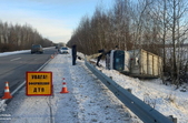 На трасі Київ — Ковель — Ягодин у Житомирській області водій вантажівки порушив ПДР та наїхав на колесовідбійник, через що авто перекинулося за межами дороги.