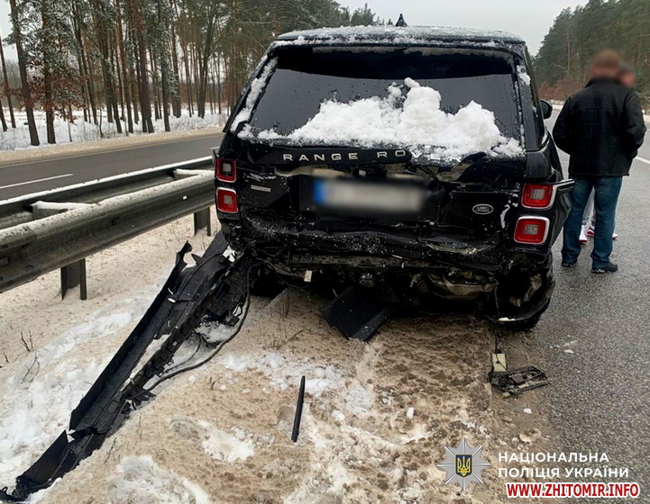 «Дорожньо-транспортна пригода сталася 7 січня близько 09:40 на 98 км автодороги Київ – Чоп, поблизу с. Новогородецьке Коростишівської громади. На місці події працювали слідчі відділу розслідувань злочинів у сфері транспорту СУ ГУНП. Встановлено, що 61-річний киянин рухався мікроавтобусом Mercedes-Вenz Vito у напрямку Житомира. Попередньо, він допустив зіткнення з автомобілем Range Rover, під керуванням 64-річного жителя Київської області, що перебував у заторі. У результаті позашляховик з’їхав на узбіччя», - йдеться у повідомленні.