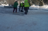 У парках і скверах працюють 62 працівники «Зеленбуду»: відбивають лід та очищають доріжки від льоду та снігу.
