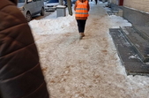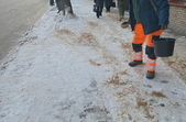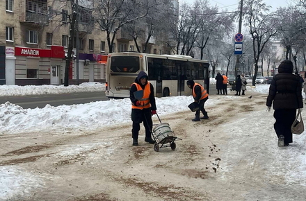 Також задіяні близько 80 працівників у складі бригад ручного прибирання: обробляють протиожеледними матеріалами тротуари загального користування, зупинки громадського транспорту, пішохідні переходи.