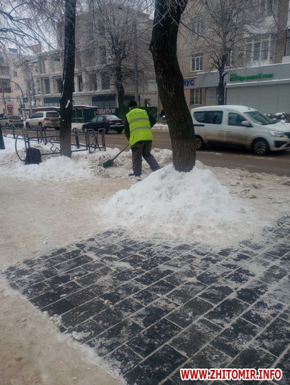 Нагадаємо, 21 січня комунальники у Житомирі чистили зупинки від снігу, але великою проблемою є зледеніння та крига, яка утворилася після сильних снігопадів. Крім того, КП «Управління автомобільних шляхів» бракує працівників, містян запрошують на роботу. Цього ж дня житомирські комунальники обробляли тротуари від снігу й льоду, у міськраді просили пішоходів бути уважними.