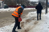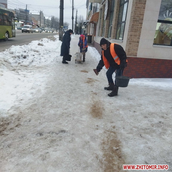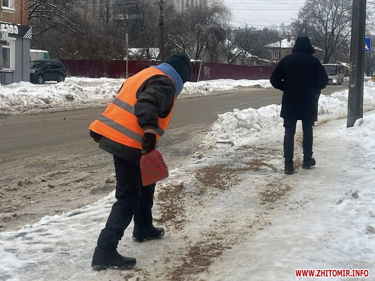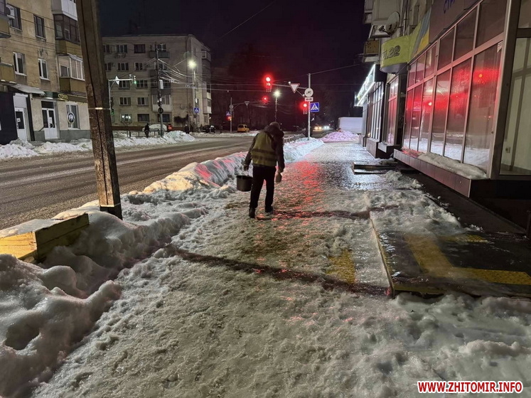 У Житомирі — ожеледиця: спецтехніка та бригади ручного посипання працюють на вулицях міста.