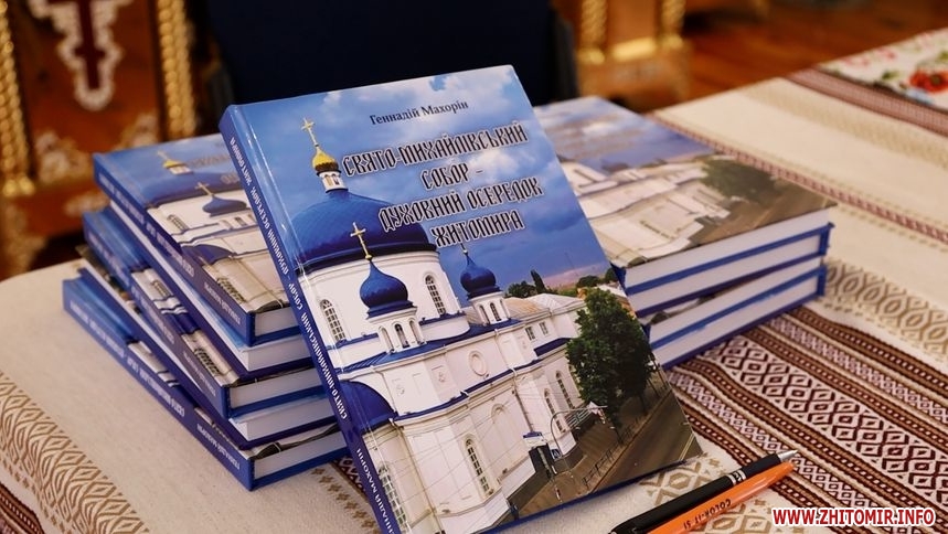«Ми відзначатимемо 170 років з часу побудови Свято-Михайлівського собору. Ця книга присвячена саме історії побудови, життю вірян, яке було навколо храму. У цій книзі люди відчують дух часу, побачать відомих, видатних людей, які були вірянами собору та зрозуміють, наскільки це був важливий духовний осередок нашого міста і можливо навіть нашого краю. Сьогодні цей храм є осередком українського духовного життя, якраз відновленню релігійного життя в цьому храмі та поверненню його вірянам приділено велику увагу на основі спогадів, безпосередніх учасників відновлення релігійного життя. Я старався згадати тут якомога більше людей причетних до цієї шляхетної справи. Книга вже два місяці продається в книгарні «Знання», буду радий, якщо вона викличе зацікавлення у громадян і люди пізнають історію цього храму та людей, пов'язаних із ним», – говорить кандидат історичних наук та автор книги «Свято-Михайлівський собор – духовний осередок Житомира» Геннадій Махорін.