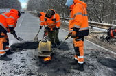 «Складні погодні умови (аномально низькі температури, перепади температур) та значне транспортне навантаження на покриття призвели до створення аварійної ямковості на дорогах загального користування державного значення, зокрема, на дорогах міжнародного значення. Попри мінусові температури та складні погодні умови дорожники проводять роботи з ліквідації аварійної ямковості на дорожньому покритті. Виконання таких робіт необхідне для забезпечення безперебійного руху та запобігання подальшого руйнування покриття», - йдеться у повідомленні.