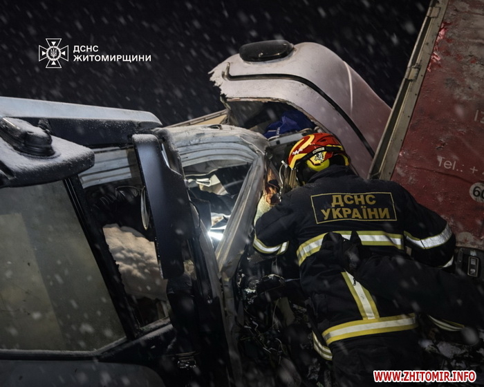 Нагадаємо, вранці 3 лютого на трасі Київ-Чоп у передмісті Житомира зіткнулись мінівен «Fiat» та вантажівка «DAF». У результаті автопригоди водія легковика затисло всередині авто, його деблокували рятувальники і передали медикам.