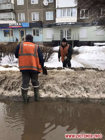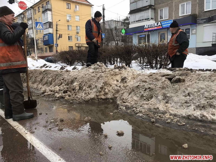 «Бригада у складі чотирьох працівників та майстра виїжджає на проблемні ділянки міста. У місцях, де накопичується вода, очищаємо зливоприймальні решітки від снігу та льоду, знімаємо затори, відкриваємо колодязі, які були засипані снігом. Це дозволяє забезпечити нормальний стік води», – зазначив директор КП «Експлуатація штучних споруд» Віталій Ролінський.