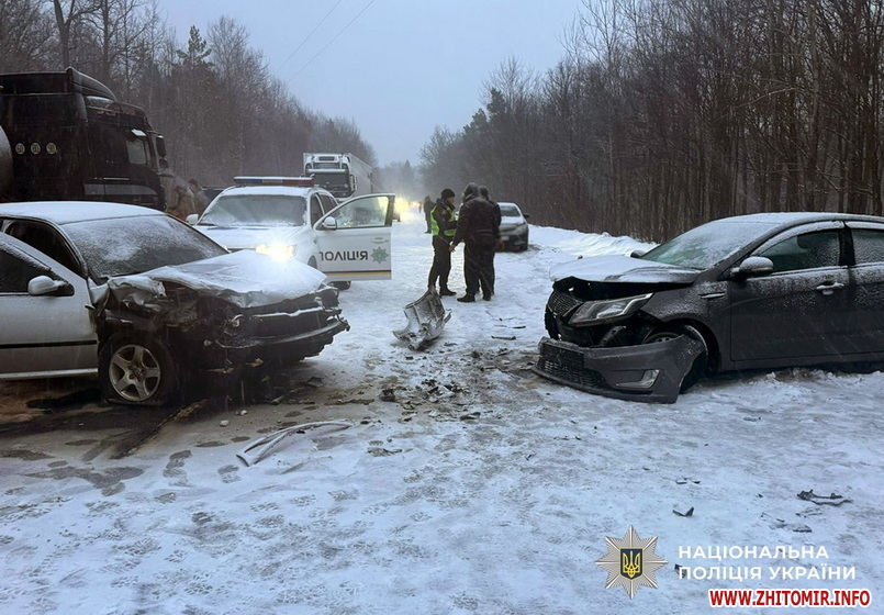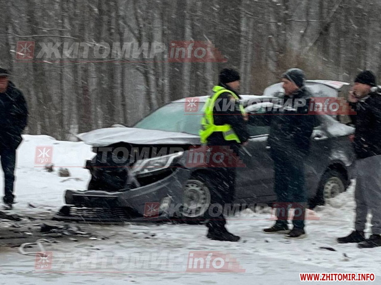 «Дорожньо-транспортна пригода сталася 15 лютого на 10 км автошляху Житомир – Чернівці, неподалік села Дениші. На місці події працювала слідчо-оперативна група Житомирського райуправління поліції № 1. Попередньо, близько 16:00 сталося зіткнення автомобіля Kia під керуванням 67-річного місцевого жителя із зустрічним легковиком Volkswagen, за кермом якого знаходився 44-річний житель Вінниччини», - йдеться у повідомленні.