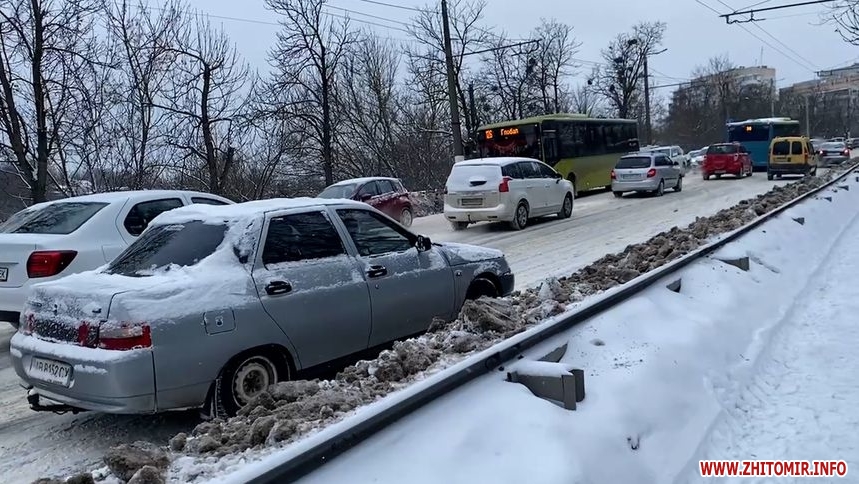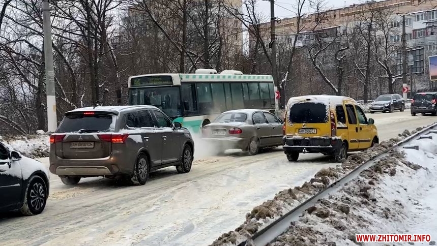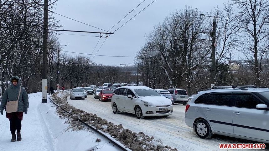 Зранку, 16 лютого, на Чуднівському мосту у Житомирі були затори. Рух ускладнився через негоду. Водії виходили з автівок і допомагали штовхати автомобілі, яким не вдавалося самостійно виїхати у бік центру міста.