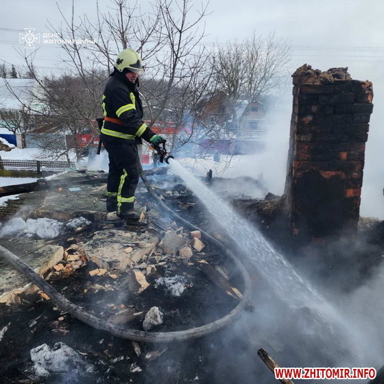 Як повідомляв Житомир.info, вночі 11 лютого 2026 року рятувальники гасили пожежу у будинку у с. Сташки Коростенського району, яка по даху поширилась на господарчу споруду.
