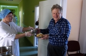 «Харчують три рази на день. Дуже смачно. Кожен раз різні страви подають», – ділится з нами пацієнт Петро Тіраєв.