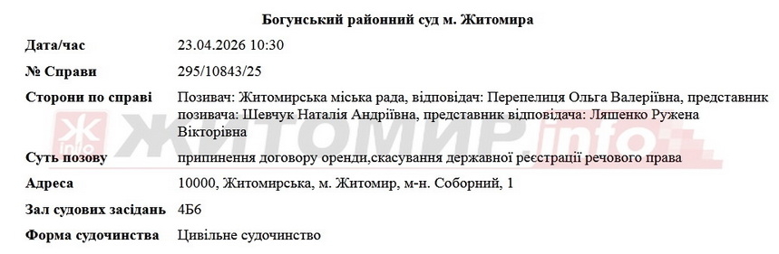 припинити договір оренди землі № 82 від 21.09.2022, укладений між Житомирською міською радою та ОСОБА_1;